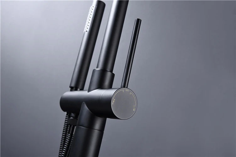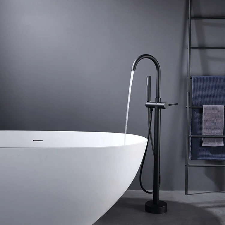 Hogar / Baño / Grifos de baño / Montaje en piso / Grifo de bañera independiente montado en el piso Grifo de agua para bañera de baño Fabricante de mezclador independiente