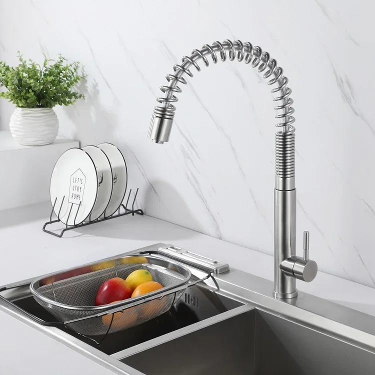 Grifo monomando semiprofesional extraíble para fregadero de cocina con resorte de acero inoxidable