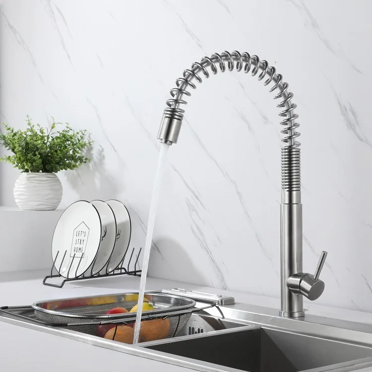 Grifo de cocina de un solo Mango, mezclador de cocina para fregadero, grifo de cocina con boquilla de resorte flexible, nuevo diseño, novedad de 2023