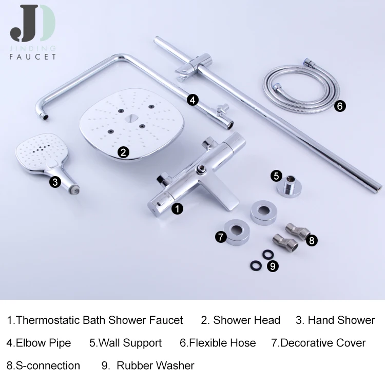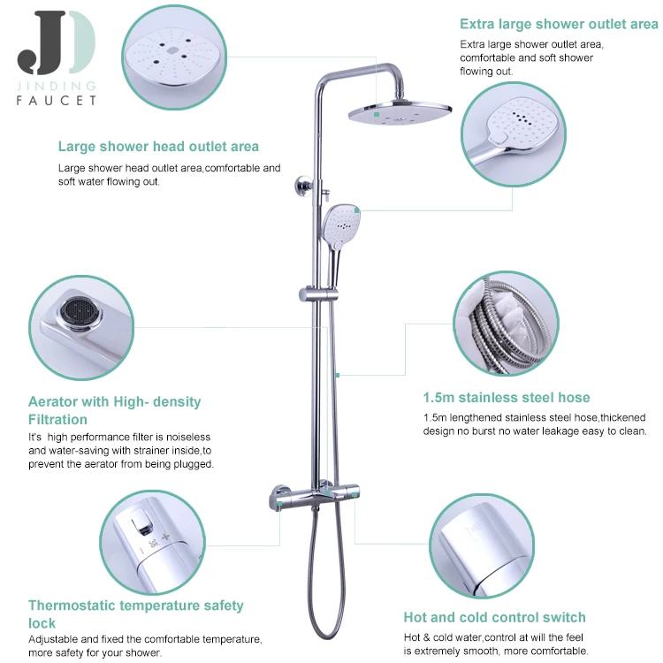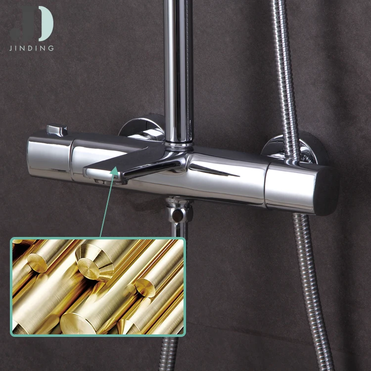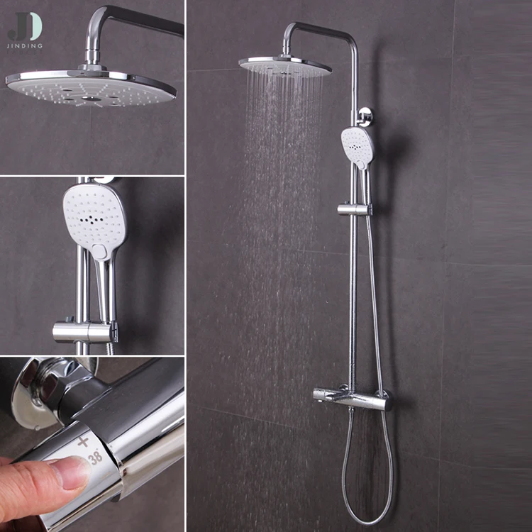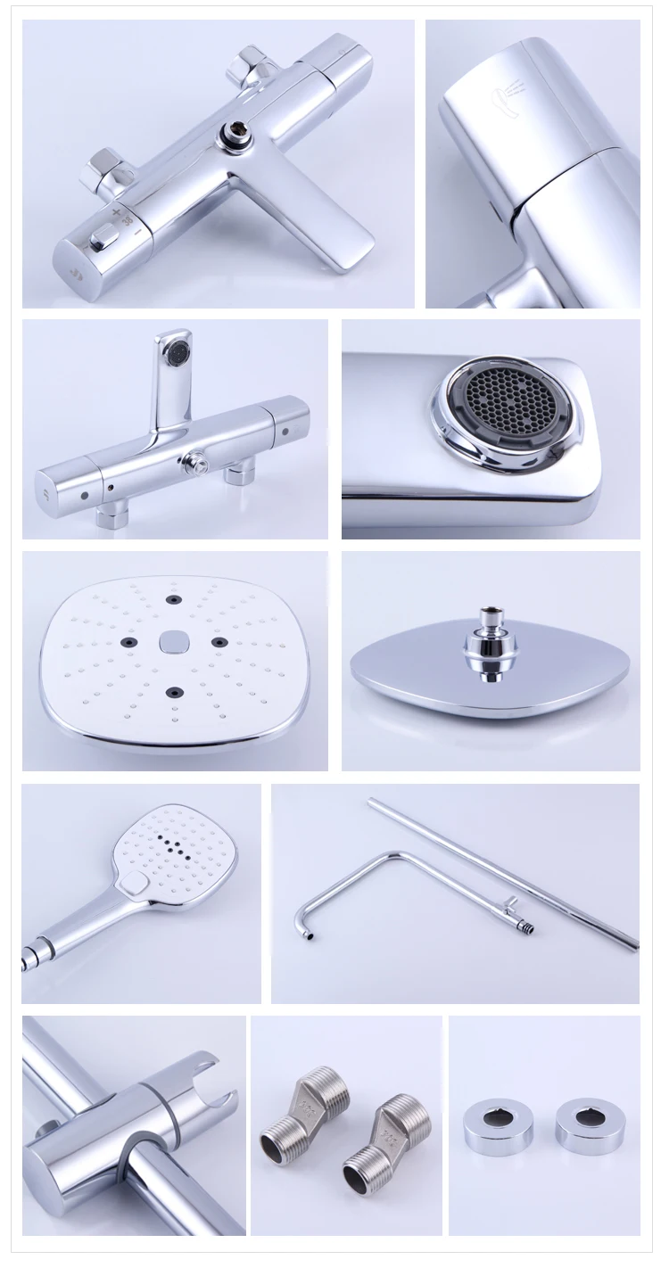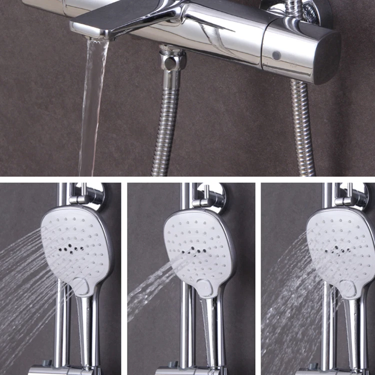 | Nuevo diseño de latón cromado Color tres funciones salida de agua lluvia termostático juego de grifo de ducha de baño | ||