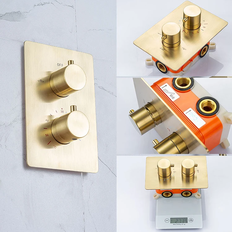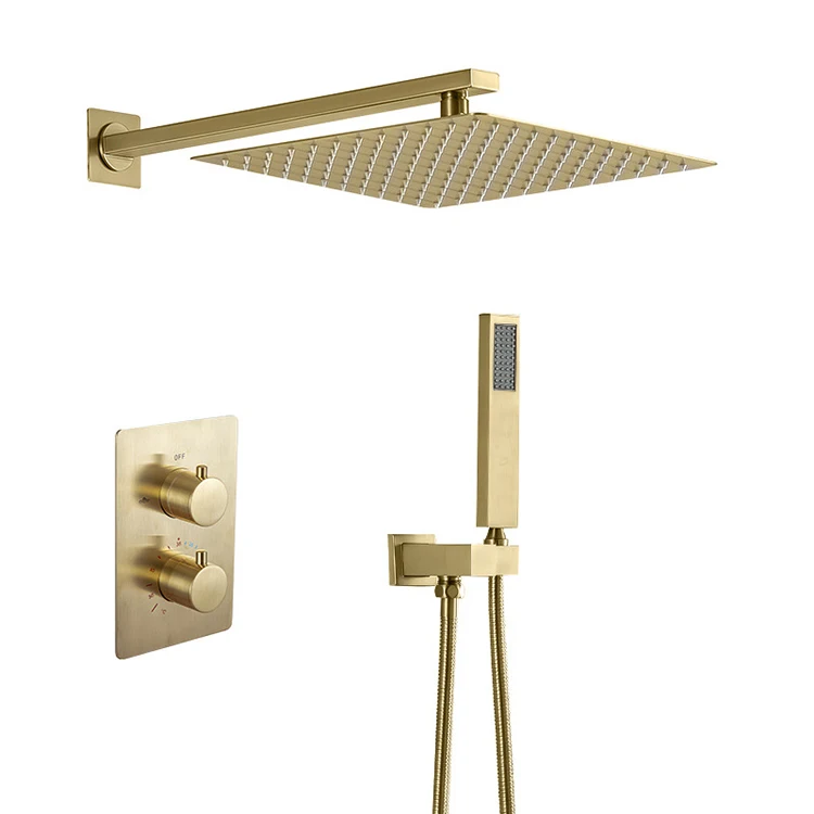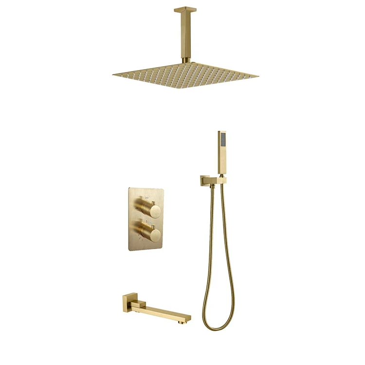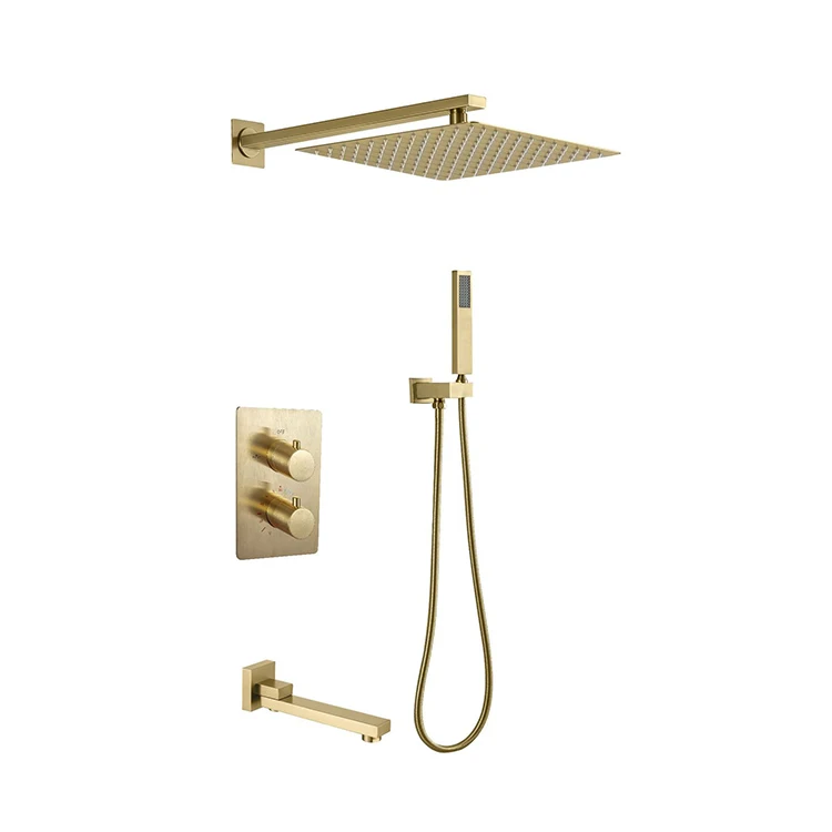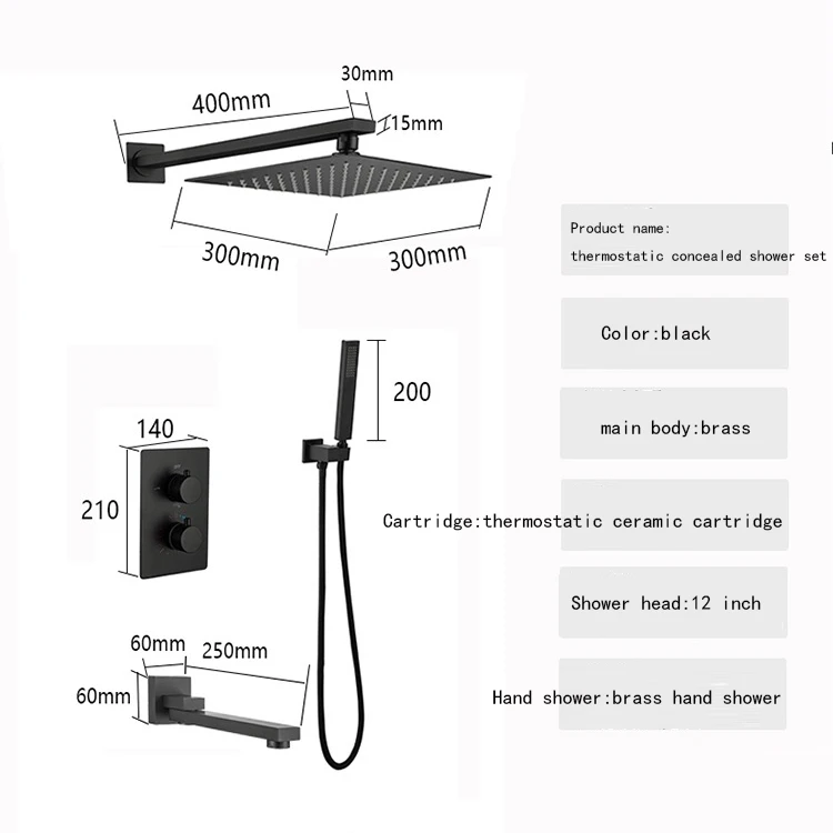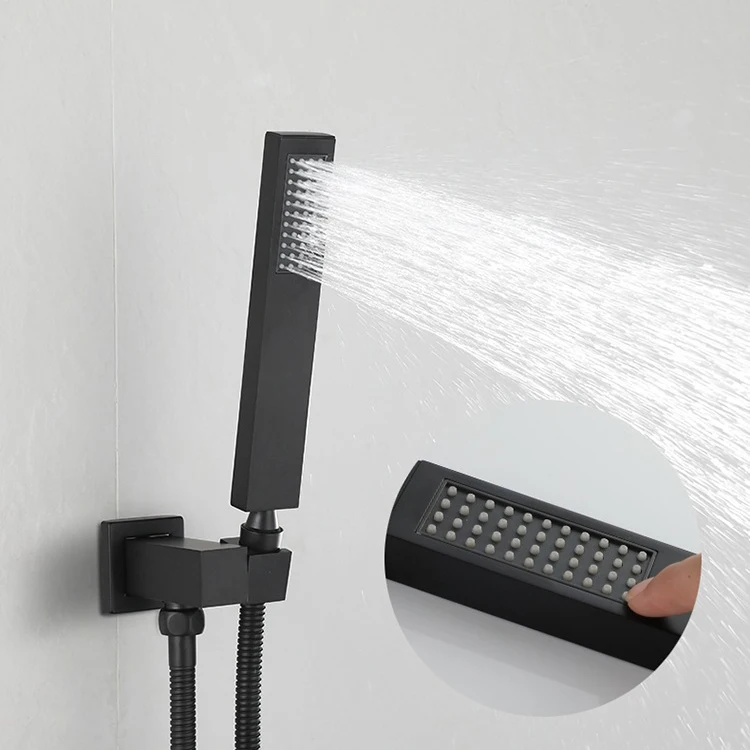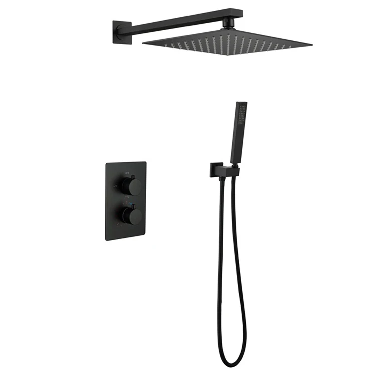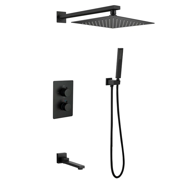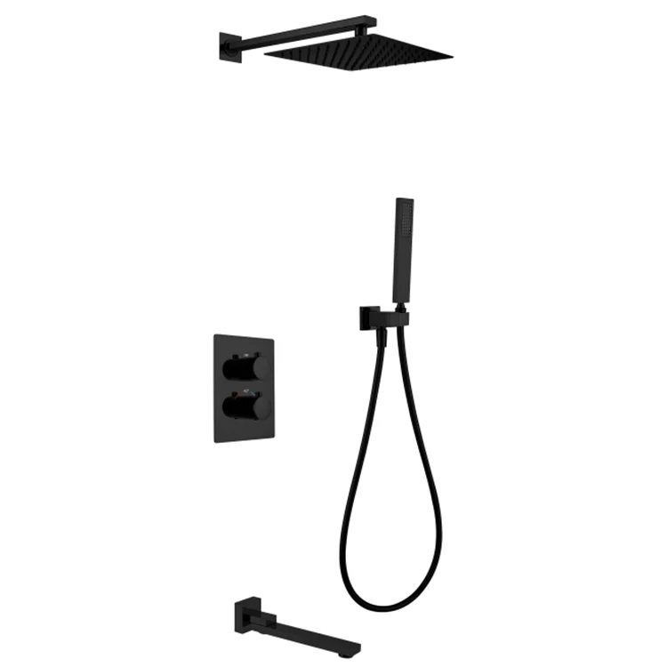 | Juego de grifo de ducha oculto termostático negro de tres funciones de agua fría y caliente de latón montado en la pared de fábrica de China | ||