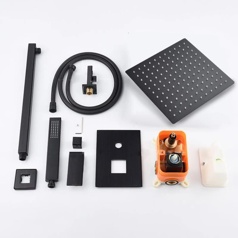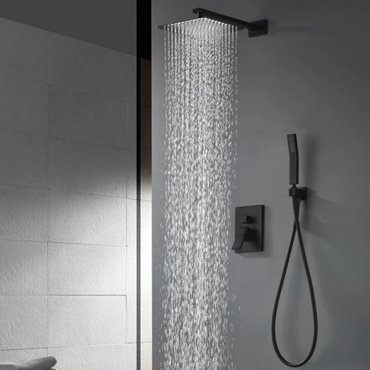 | Juego de cabezal de ducha y grifería de pared negro para baño, mezclador de ducha oculto, grifos para baño y ducha | ||