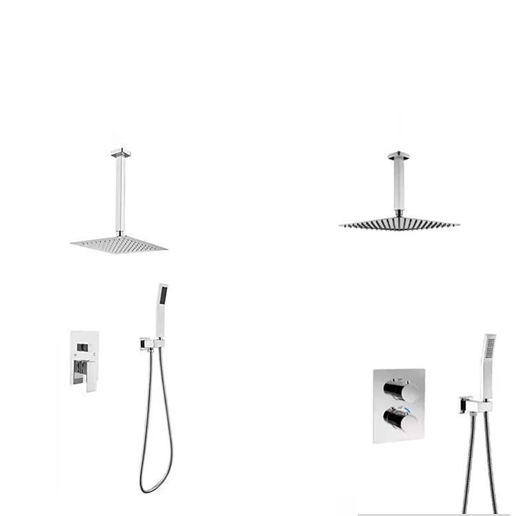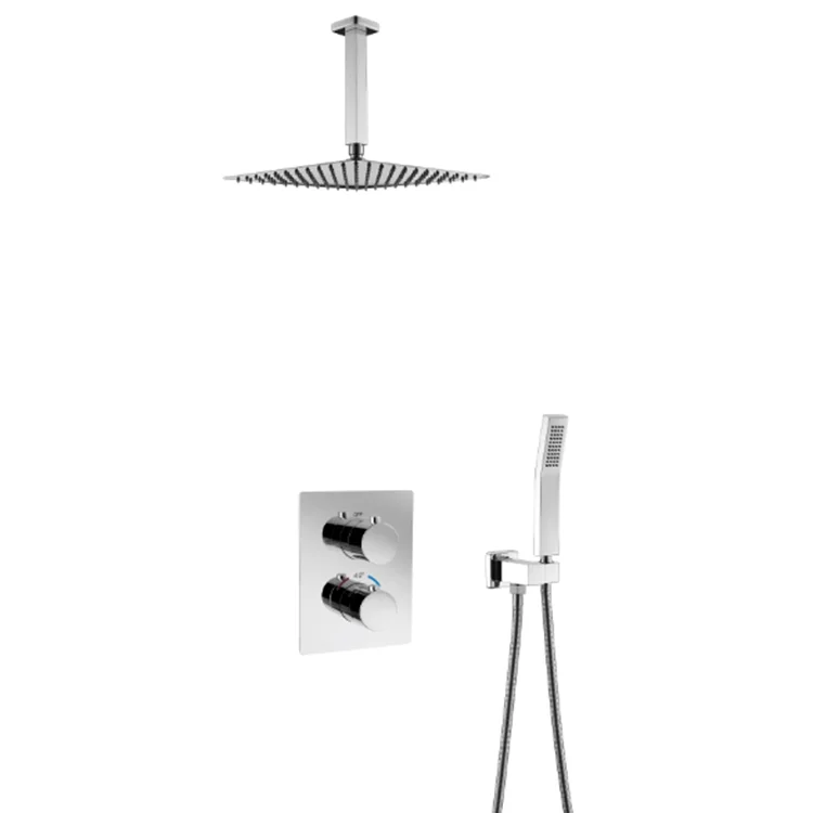 | Sistema termostático de la ducha del equipo de Chrome del cuadrado del cuarto de baño de la temperatura de dos funciones | ||