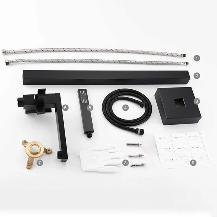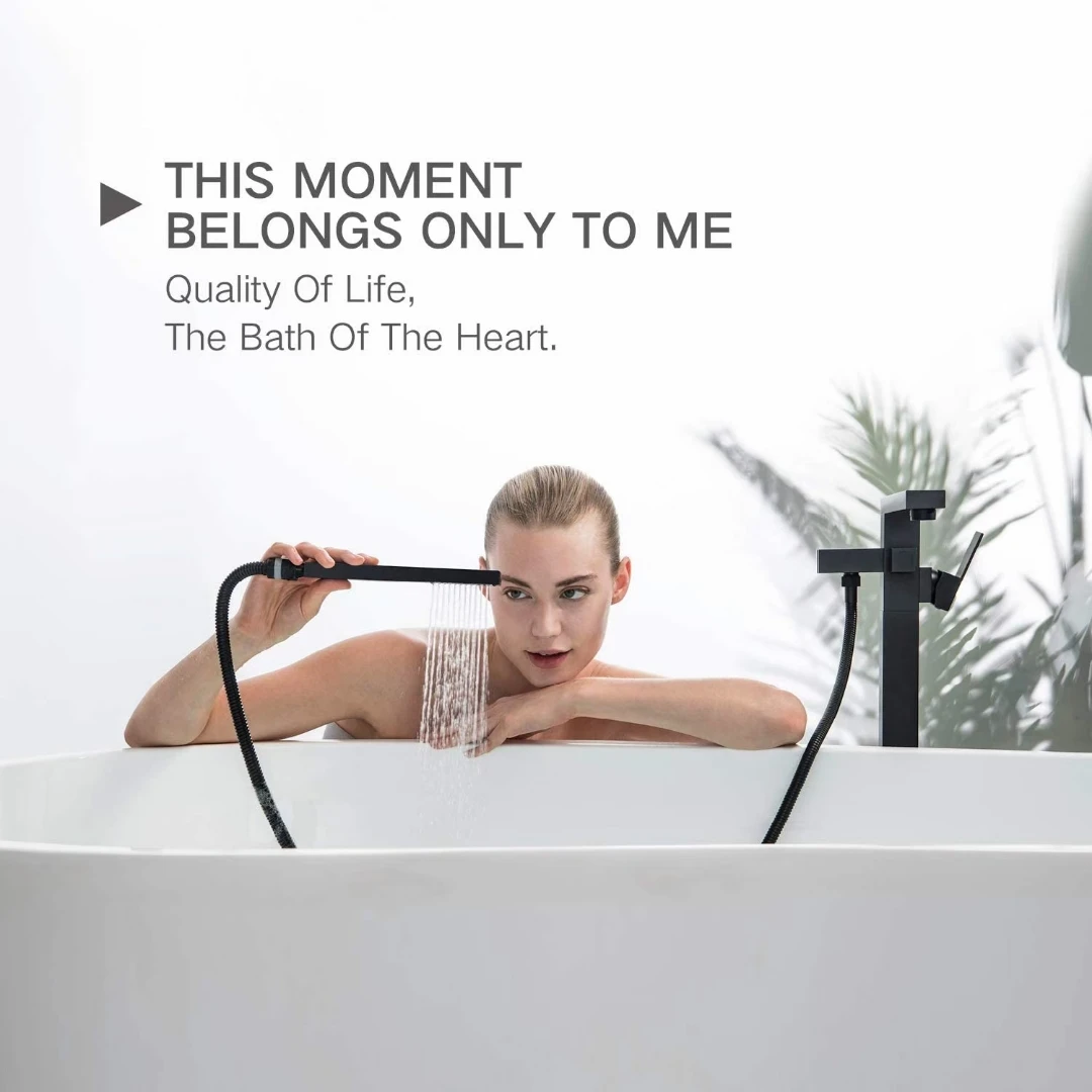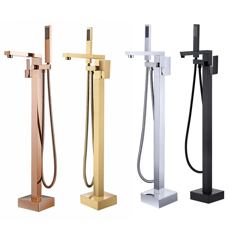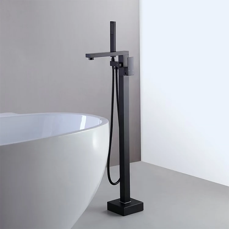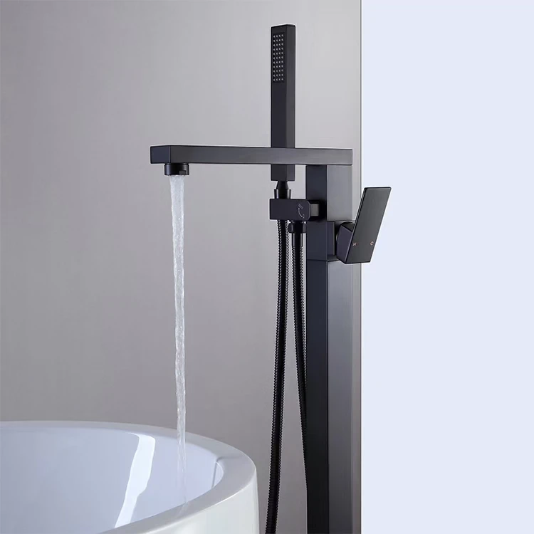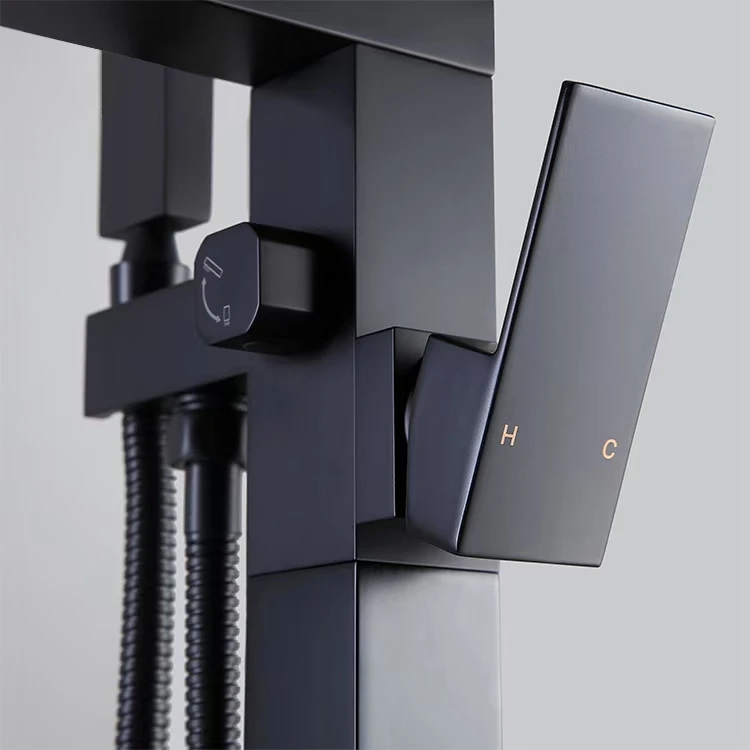 | Grifo de ducha independiente de latón negro con función de agua fría y caliente de estilo americano, grifo montado en el suelo | ||